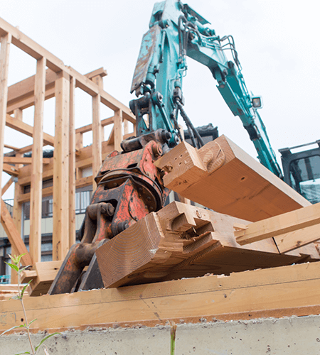 一般住宅から大型物件まで、あらゆる建物の解体工事を行っています。工事にはそれぞれの建物構造に合った重機を使用しています。